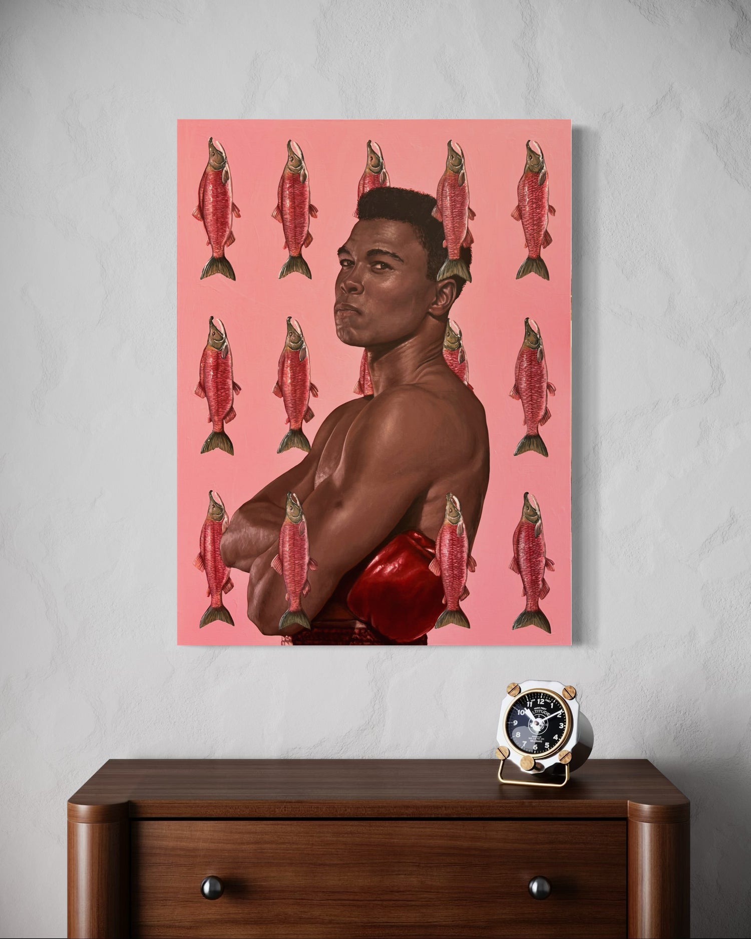 Layered within is the journey of the salmon — king of the current, born to swim upstream. Against all odds, it arrives. As does Ali. This piece ties two stories into one current: the boxer and the fish. Flesh and spirit. Fight and flow.